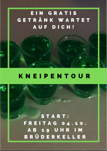 Kneipentour Treysa Kalender Zum Kalender hinzufügen Zu Timely-Kalender hinzufügen Zu Google hinzufügen Zu Outlook hinzufügen Zu Apple-Kalender hinzufügen Einem anderen Kalender hinzufügen Als XML exportieren Klicken, um Karte anzuzeigen Wann: Oktober 4, 2019 um 19:002019-10-04T19:00:00+02:002019-10-04T19:15:00+02:00Wo: Brüder Keller im Brüderhaus Elisabeth-Seitz-Straße 16 34613 Schwlamstadt