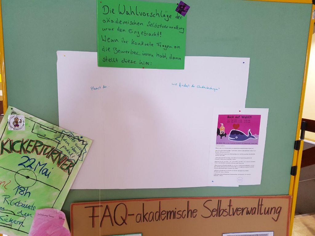 Wir würden gerne von euch wissen was euch bei uns an der Hochschule fehlt, wenn euch was einfällt könnt ihr es im Eingangsbereich des R-Gebäudes auf das Plakat schreiben oder